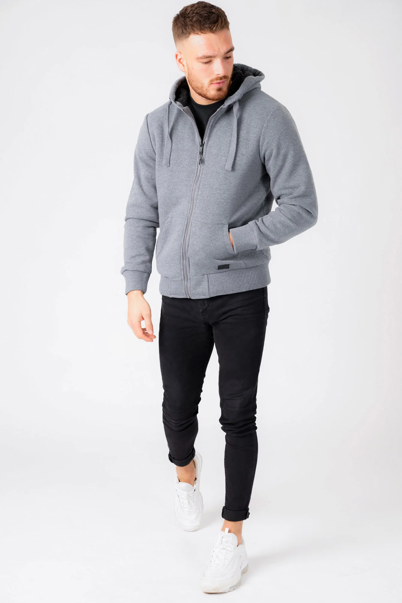 Bolo 2 Zip Through Chunky Hoodie With Borg Lining In Mid Grey Marl - Dissident