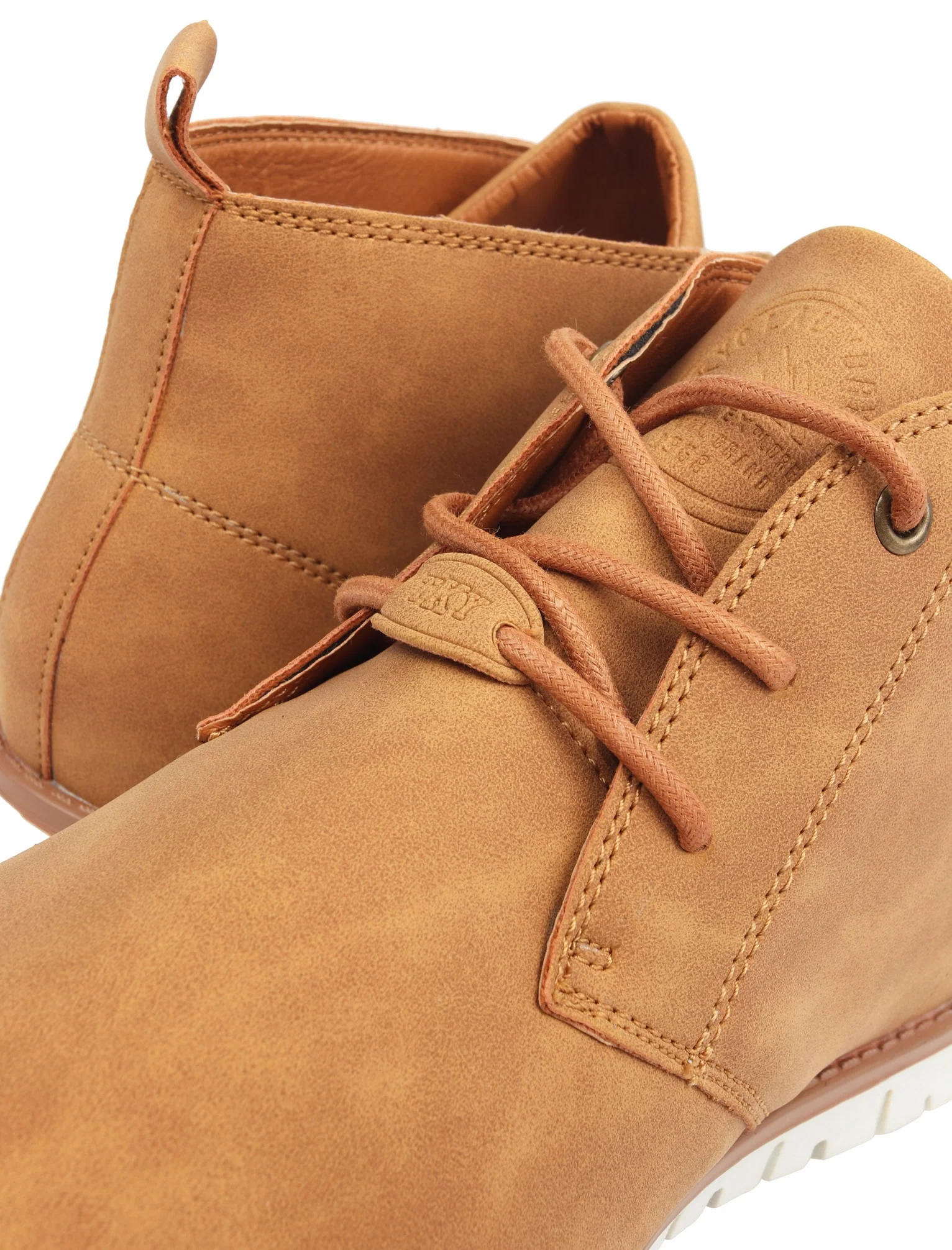 Keep your footwear on point for the new season in these ‘Century’ faux leather chukka desert boots in tan by Tokyo Laundry. This classic design has the buffed faux nubuck finish which gives it a soft, velvet surface making it more resistant to wear. Cut at the ankle for a flattering fit, it has the 3 pair hole lace fasten with top metal eyelets. It has the grooved rubber role, with cushioned insoles for a comfy fit. Pair with a checked shirt and skinny jeans to complete your look.