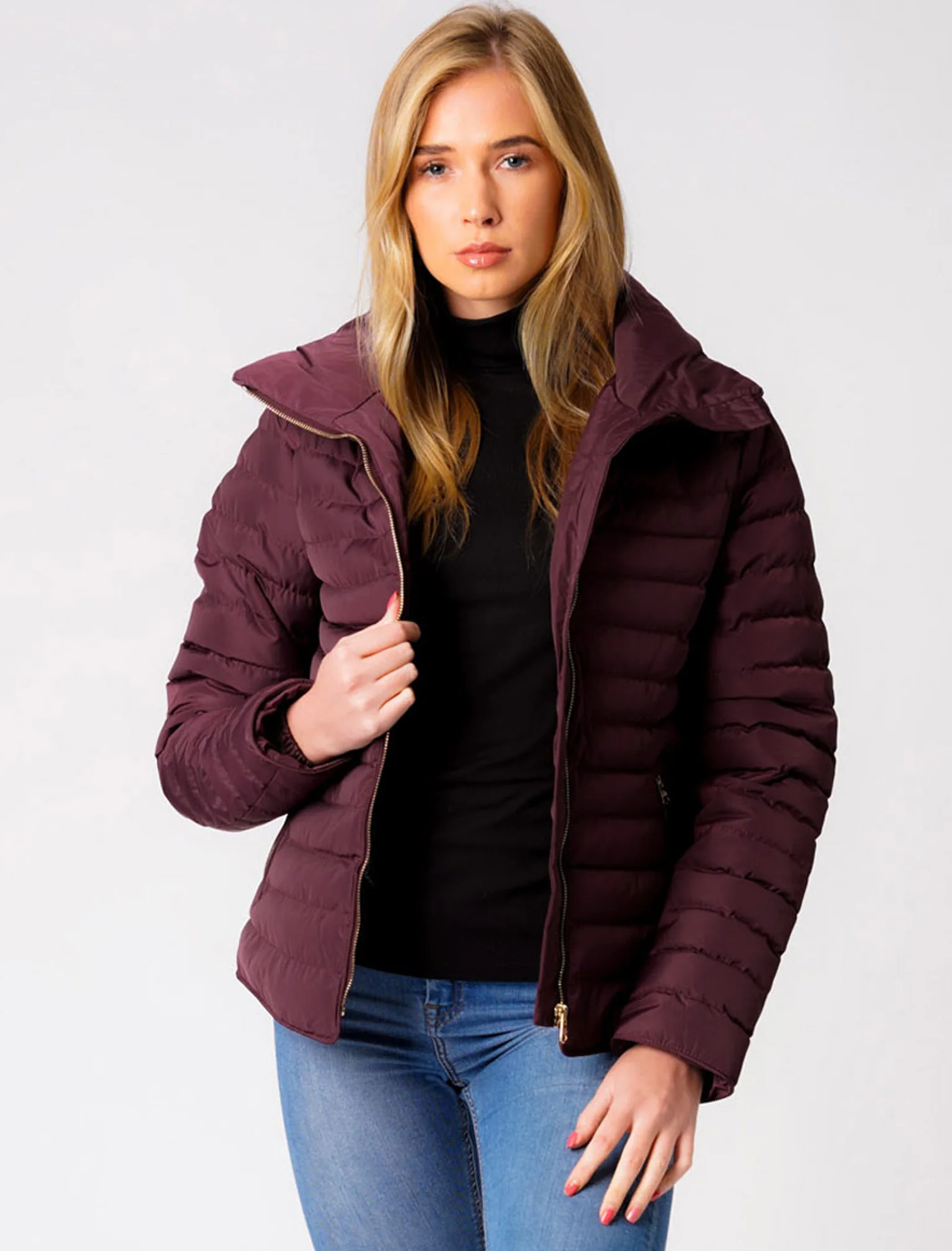Honey Funnel Neck Quilted Jacket in Burgundy - Tokyo Laundry