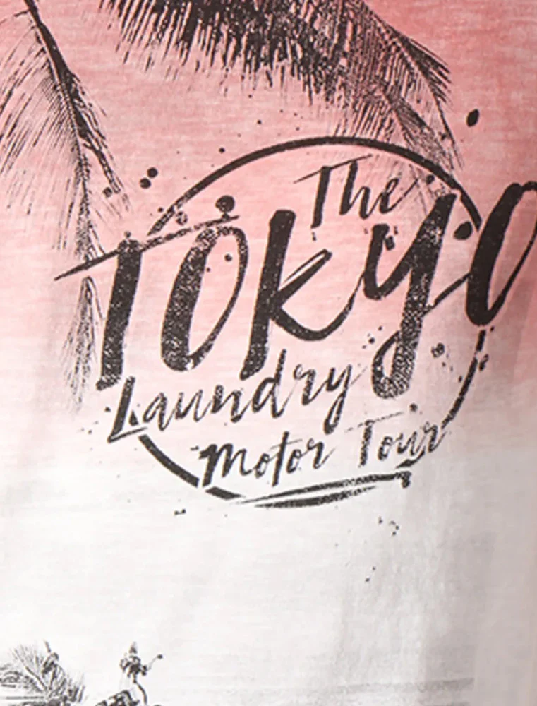 Making us dream of the beach this summer is the ‘Motor Tour’ motif crew neck cotton slub t-shirt in faded rose by Tokyo Laundry. This scenic tee depicts the true tranquillity of the beach with its graphic motif design. The colouring of the tee fades into white giving it a dip dye effect while the cotton rich slub material keeps this tee cool and soft to wear in the warmer months. The iconic Tokyo Laundry branding is shown on a metal badge to the hem which adds a subtle detail to the top. Wear this tee with a pair of baggy jeans for a laidback look.